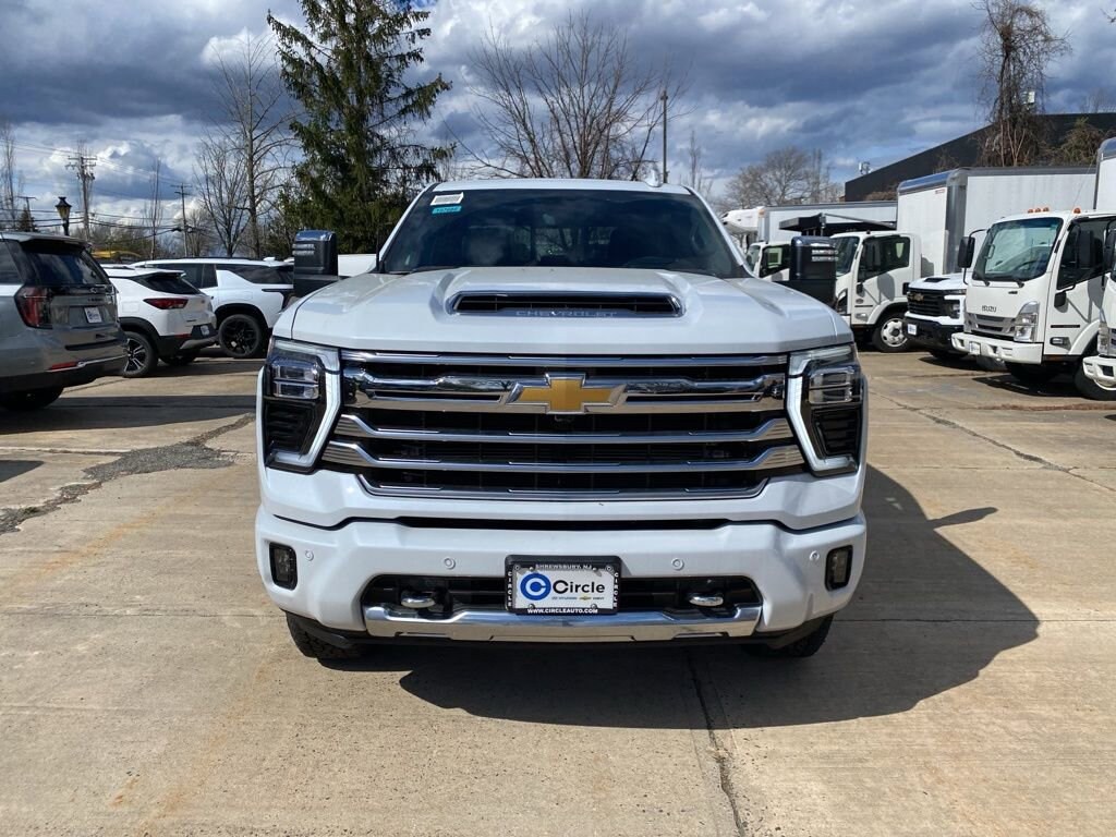 Polar White Tricoat 2026 Chevrolet Silverado 2500HD High Country 4D Crew Cab 4WD 10-Speed Automatic Duramax 6.6L V8 Turbodiesel 10-Speed Automatic, 4WD, Black Leather.