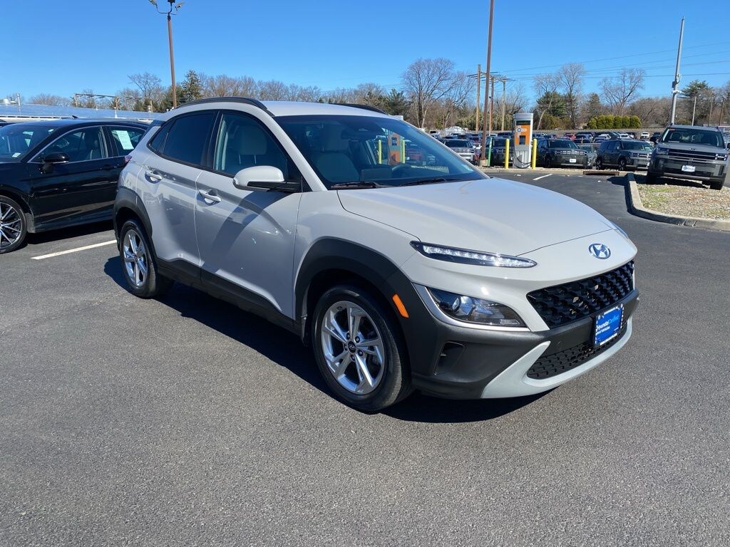 Certified. 2023 Hyundai Kona SEL 4D Sport Utility Cyber Silver CARFAX One-Owner. Clean CARFAX. 28/33 City/Highway MPG NEW WIPER BLADES, NEW CABIN AIR FILTER, 17" x 7.0J Alloy Wheels, 6 Speakers, Apple CarPlay & Android Auto, Carpeted Floor Mats, Cloth Seat Trim, Emergency communication system: Blue Link Connected Car Service (3-year complimentary subscription), Exterior Parking Camera Rear, Front & Rear Mudguards, Front Bucket Seats, Fully automatic headlights, Option Group 01, Power driver seat, Radio: AM/FM/HD/SiriusXM Audio System, Rear window wiper, Remote keyless entry, Security system, Split folding rear seat, Steering wheel mounted audio controls.