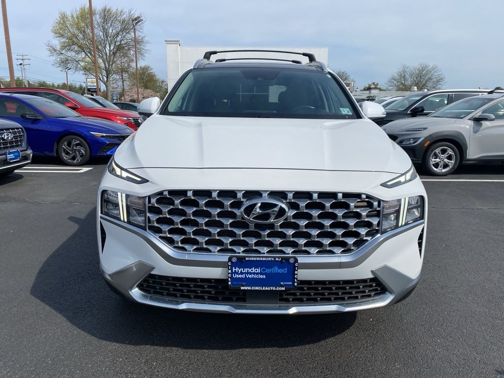 2023 Hyundai Santa Fe SEL 4D Sport Utility Serenity White Pearl Odometer is 2803 miles below market average! CARFAX One-Owner. Clean CARFAX. AWD, Black Artificial Leather, 12.3" LCD Multi-Information Display, 18" x 7.5J Alloy Wheels, 8-Way Power Passenger Seat, Acoustic-Laminated Front Side Windows, Apple CarPlay & Android Auto, Auto-Dimming Rear-View Mirror, Blind-Spot View Monitor, Carpeted Floor Mats, Chrome Front & Rear Bumper Accents, Chrome Interior Accents, Exterior Parking Camera Rear, Front dual zone A/C, Fully automatic headlights, H-Tex Leatherette Seat Trim, harman/kardon® Audio System, Heated Front Bucket Seats, Leather steering wheel, LED Interior Lights, LED Taillights, Manual Rear Side Sunshades, Mudguards, Navigation System, Option Group 02, Panoramic Sunroof, Power driver seat, Power Liftgate, Power Release 2nd Row Seats, Premium Package, Rear window wiper, Remote keyless entry, Roof Rack Cross Bars (DISC), Security system, Silver Front Grille, Split folding rear seat, Stain-Resistant Cloth Seat Trim, Steering wheel mounted audio controls, Surround View Monitor, Wheel Locks.